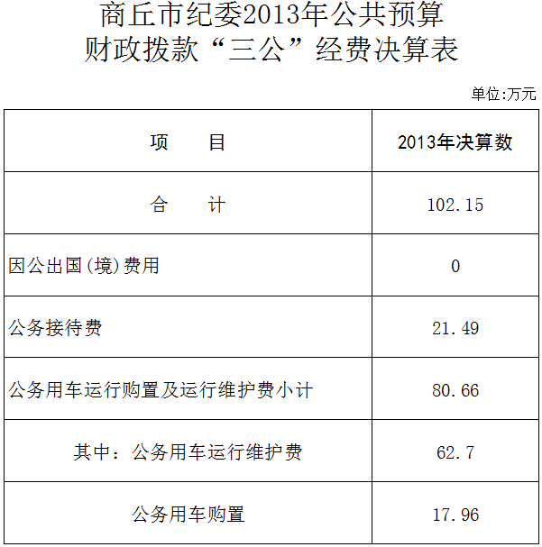 2013年“三公经费”财政拨款支出102.15万元。具体情况如下: