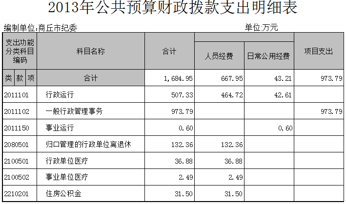 二、中共商丘市纪律检查委员会2013年度公共预算财政拨款支出明细表说明