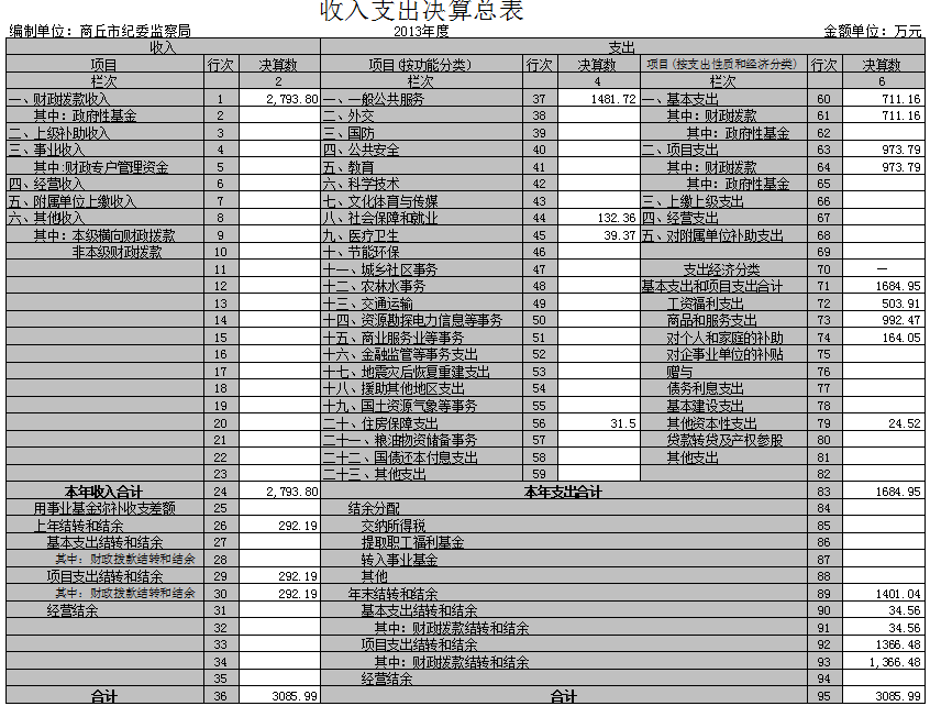 2013年度收支总决算3085.99万元。其中: